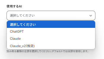使用するAIの設定も可能です。今回は推奨されているClaudeを使用します。