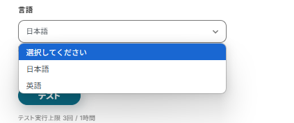 言語は今回「日本語」を入力しています。