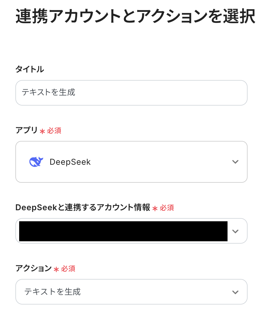 ・Googleフォーム、Google スプレッドシート、DeepSeekをそれぞれYoomと連携させてください。