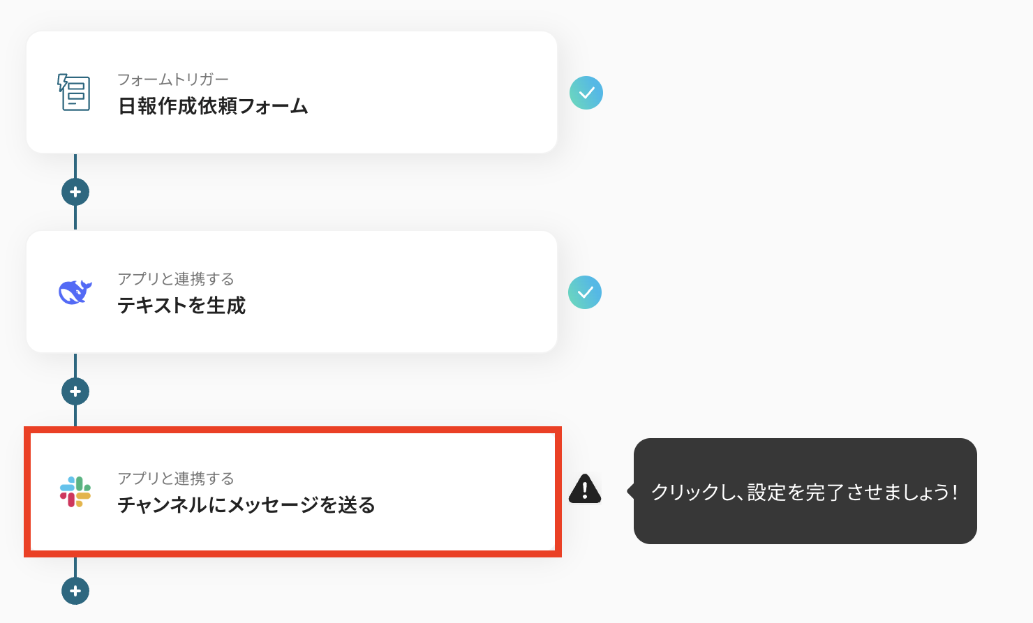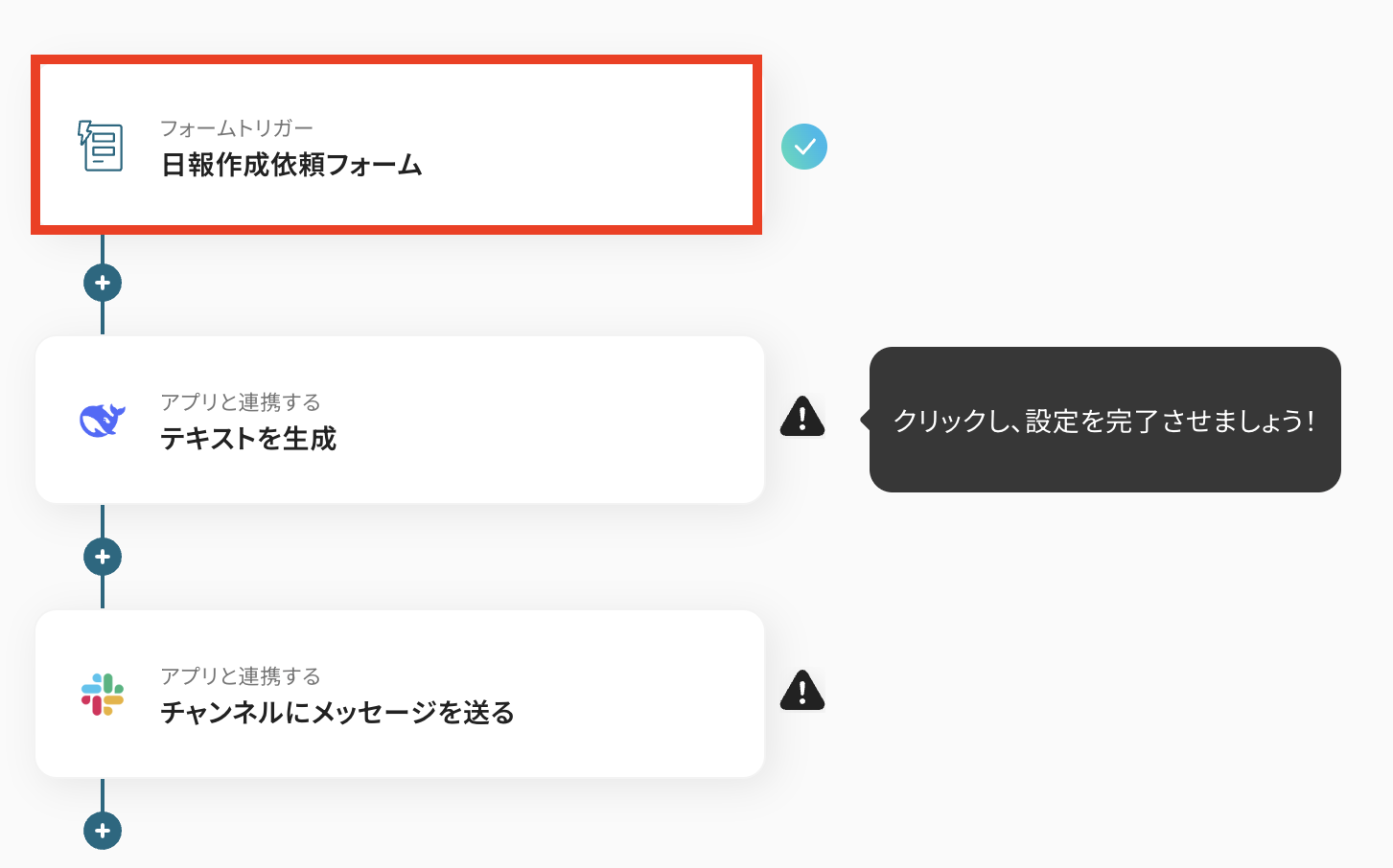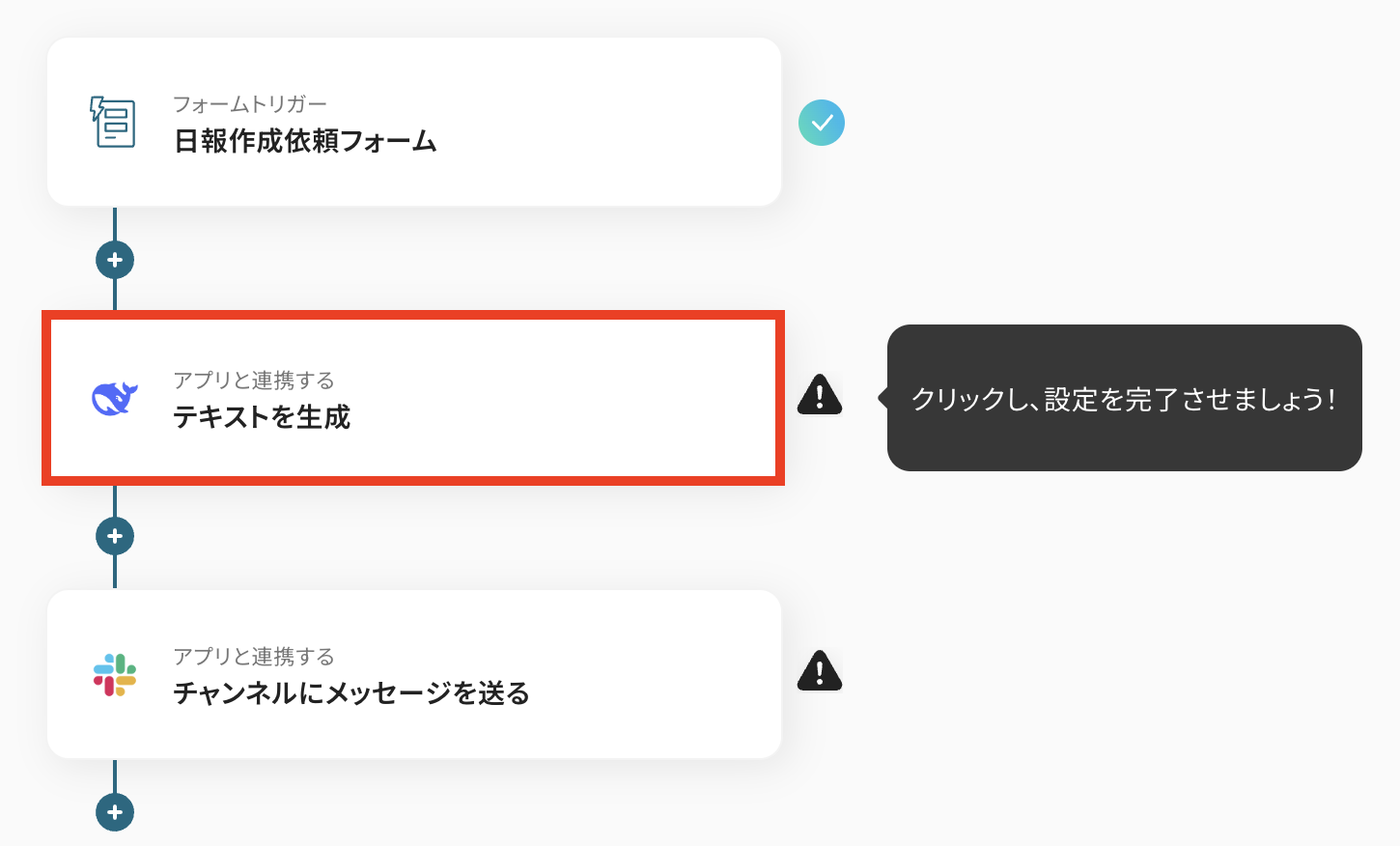 それではここから代表的な例として「フォームで送られた内容をもとにDeepSeekで日報を作成し、Slackに通知する」フローの作成手順を解説していきます!