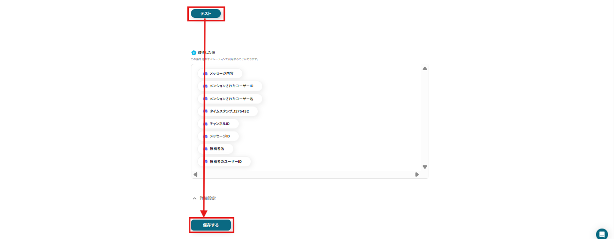 ここまで設定が完了したら、テストを実行し「保存する」ボタンをクリックします。