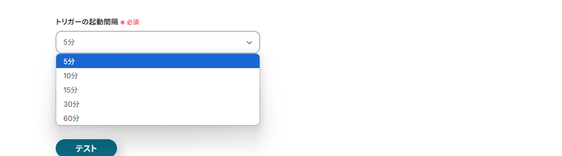 トリガーの起動タイミングは、5分、10分、15分、30分、60分のいずれかで設定できます。