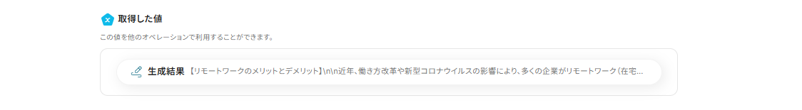 下記画像のように設定すると、生成された記事を自動で引用しDiscordに送信することができます。