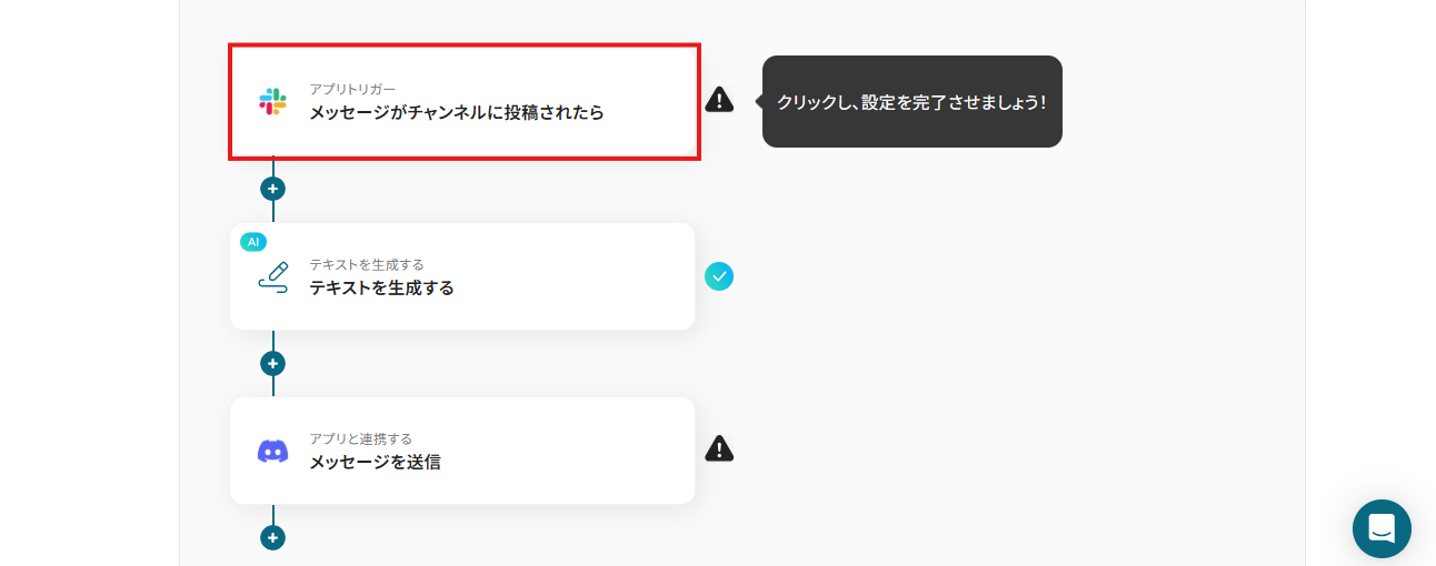 - Slackのトリガー設定、AIによる記事作成とDiscordへの通知アクション設定