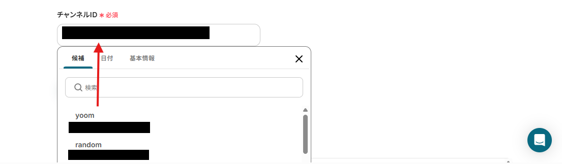 チャンネルIDは、枠内をクリックし表示される候補から任意で選択しましょう。