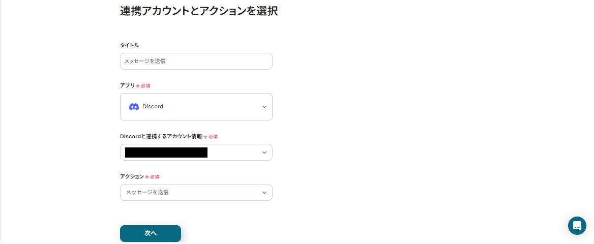 最後に、Discordアイコンの「メッセージを送信する」という項目を設定しましょう。