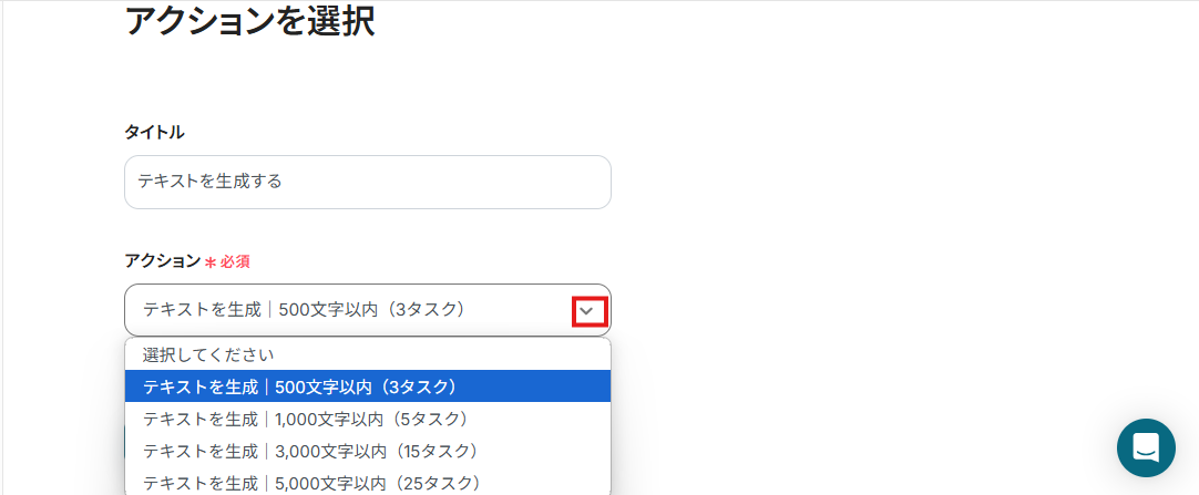 消費するタスク数が異なるので、生成したい文字数を選択しましょう。