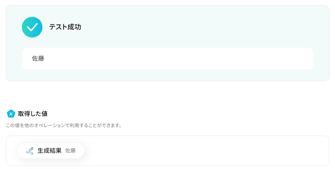 ここで取得した値を次以降のステップで活用します。