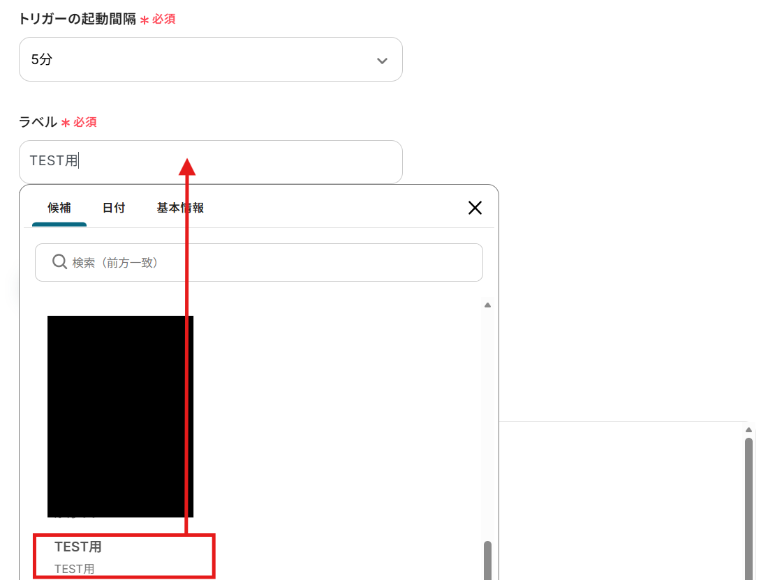 ラベル:候補から選択します。