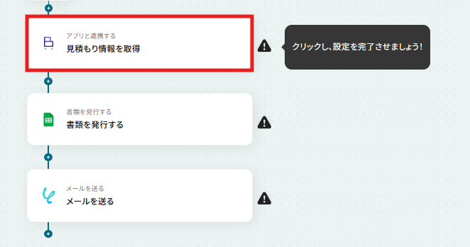 フローに戻り、「見積もり情報を取得」のアイコンをクリックします。