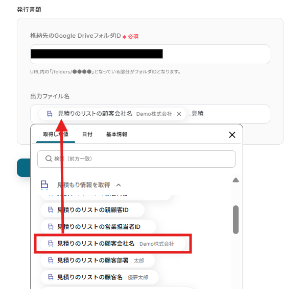 ステップ6: 見積もり情報を取得するアクション設定