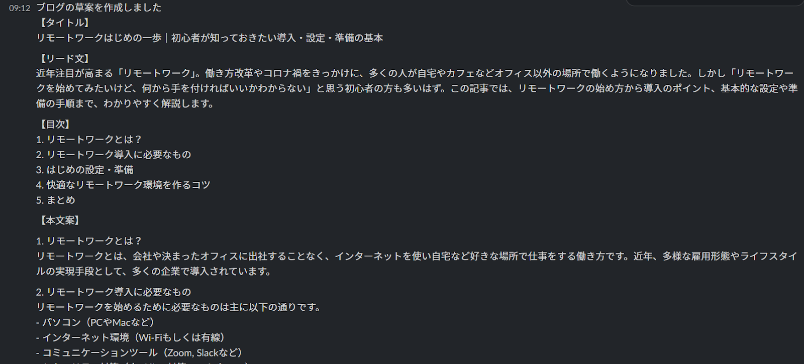 チャットツールへAIが作成したブログ草案を自動で通知する