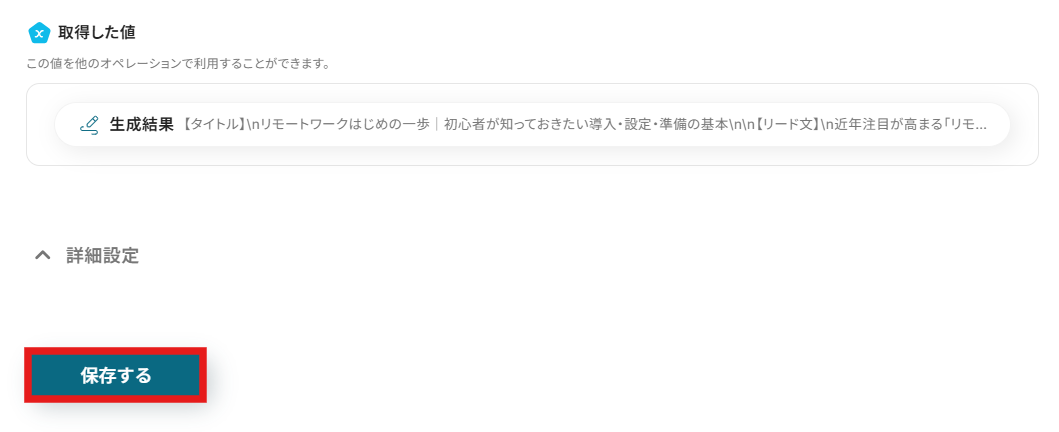 また、「テキストを生成する」の詳しい設定方法については以下のリンク先をチェックしてみてくださいね。