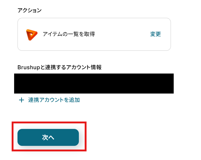 「Brushupと連携するアカウント情報」を確認し、「次へ」をクリックして進んでください。