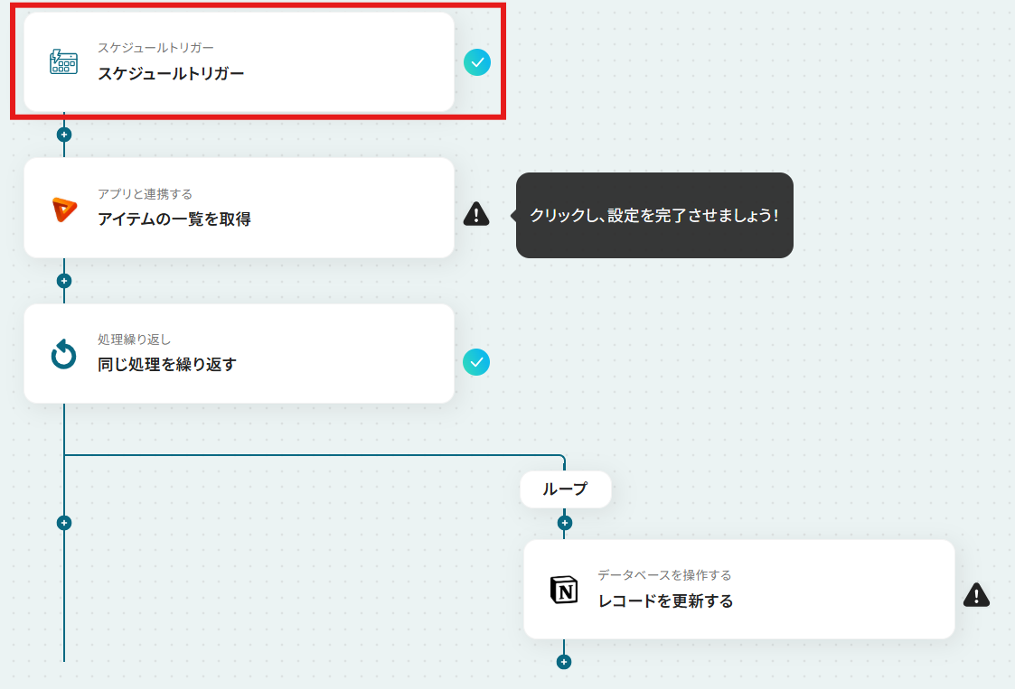 それではここから代表的な例として、毎朝Brushupのアイテム一覧を取得し、Notionのレコードを自動で更新するフローを解説していきます!