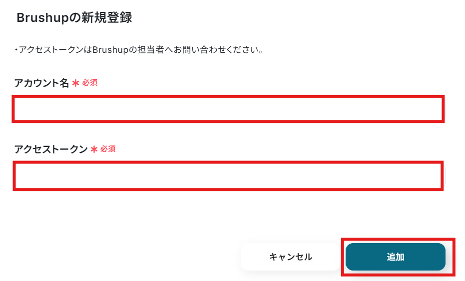 「アクセストークン」はBrushupの担当者に問い合わせて入力してくださいね。