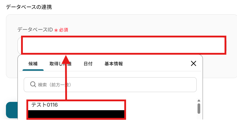 使用したいNotionのデータベースの「データベースID」を候補から選択しましょう。
