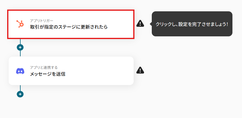 それではここから代表的な例として、HubSpotで取引が特定のステージに更新された際に、その情報をDiscordの指定チャンネルへ自動で通知するフローを解説していきます!この設定により、チームメンバーはHubSpotを常に確認しなくても、重要な進捗をリアルタイムで把握できるようになります。