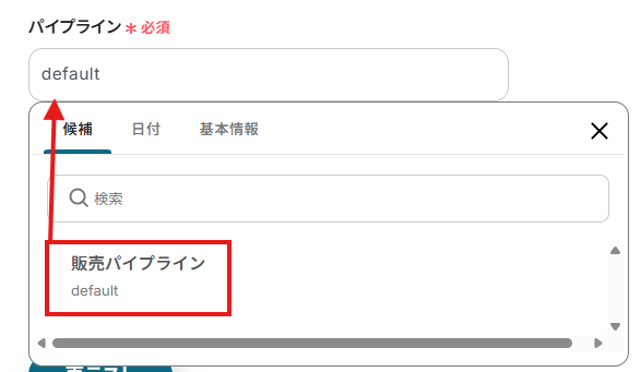 4.「パイプライン」は、入力欄をクリックして表示される候補から選択してください。
