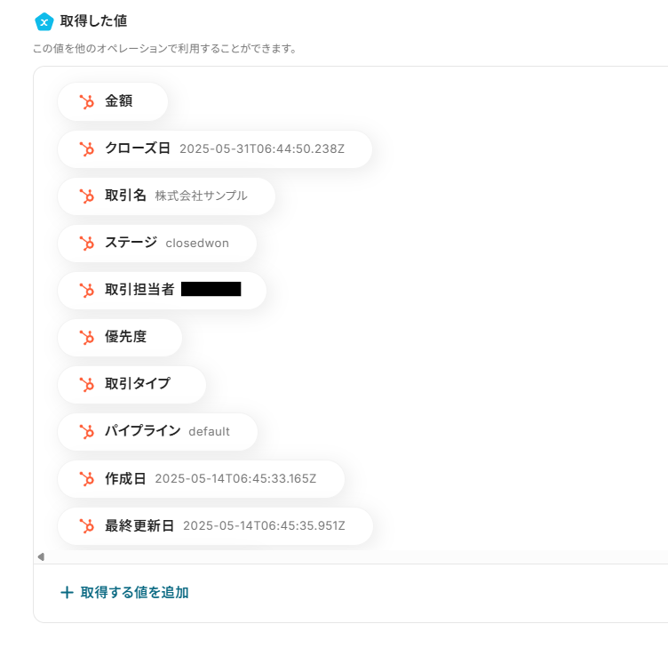アウトプットとは、トリガーやオペレーション設定時に、「テスト」を実行して取得した値のことを指します。