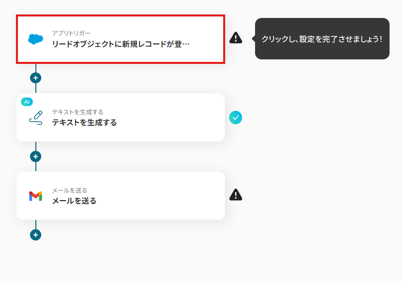 「Salesforceに新規リードが追加されたら、OpenAIでフォローアップメールを生成し、Gmailで送信する」フローは、リード獲得からフォローアップまでを自動化する業務ワークフローです。