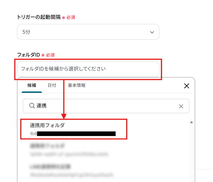 - 「トリガーの起動間隔」のプルダウンから任意の間隔を選択。
