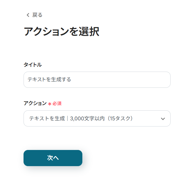 - 指定するプロンプトの文字数に応じて「アクション」をプルダウンから選択。