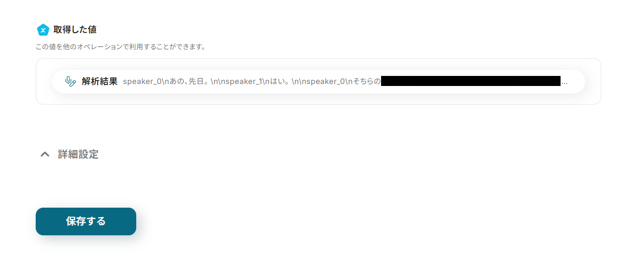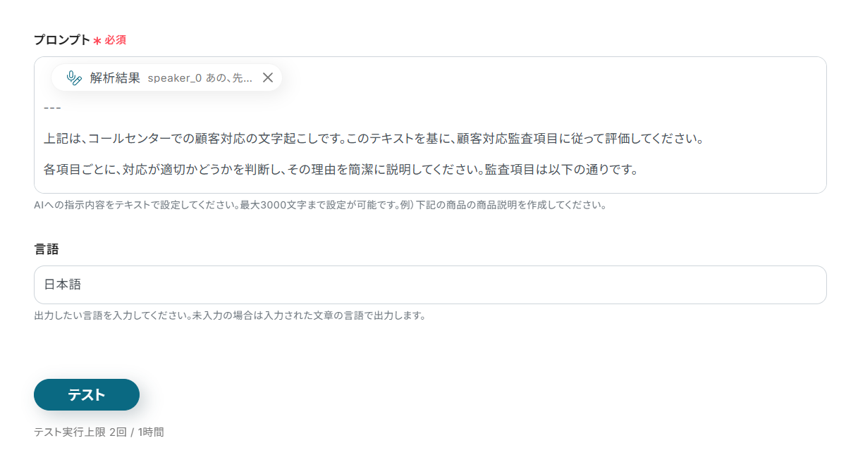 ステップ5で文字に起こしたテキストを、AIの解析にかけていきます。