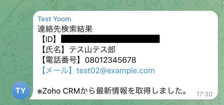 Telegramで特定のメッセージが送信されたら、Zoho CRMで連絡先を検索し通知する