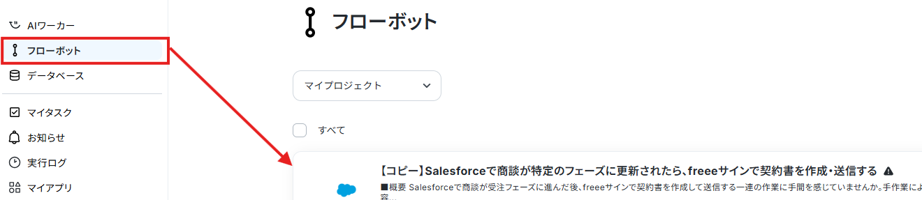 また、コピーしたテンプレートはフローボットに保存されているので、ここからも開くことができます。