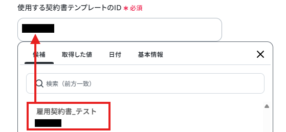 - freeeサインで契約書を作成するオペレーションでは、使用する契約書のテンプレートや、作成する契約書のタイトルなどを任意で設定できます