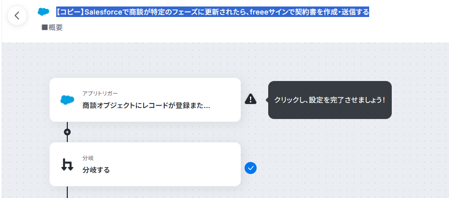 - Salesforceのトリガー設定とfreeeサインのアクション設定
