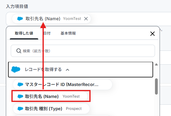 ※取得した値とは 設定時の「テスト」で取得した値のことです。後続ステップの入力値として利用でき、実行のたびに最新の内容に更新(変動)されます。
