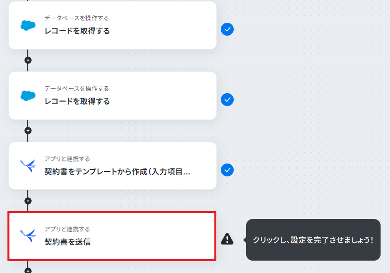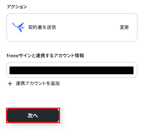 - 最後に、オペレーションでfreeeサインの「契約書を送信」アクションを設定し、作成した契約書を送信します。