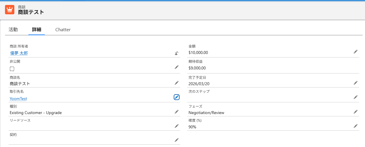 Salesforceでトリガーとなる商談を準備します。