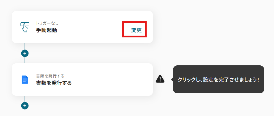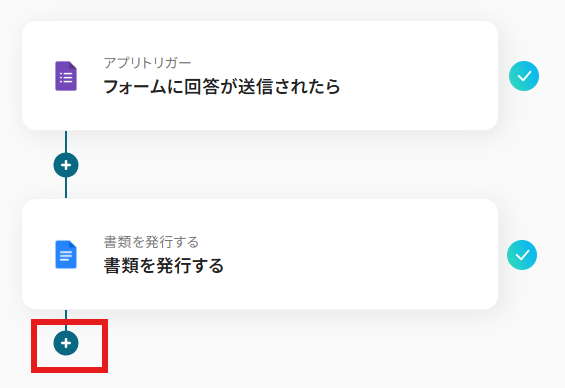 例えば、書類が発行されたらGmailでメールを送りたい場合、Googleドキュメントのオペレーション直下にある「+」マークをクリックし、オペレーションを追加することで実現可能できます。