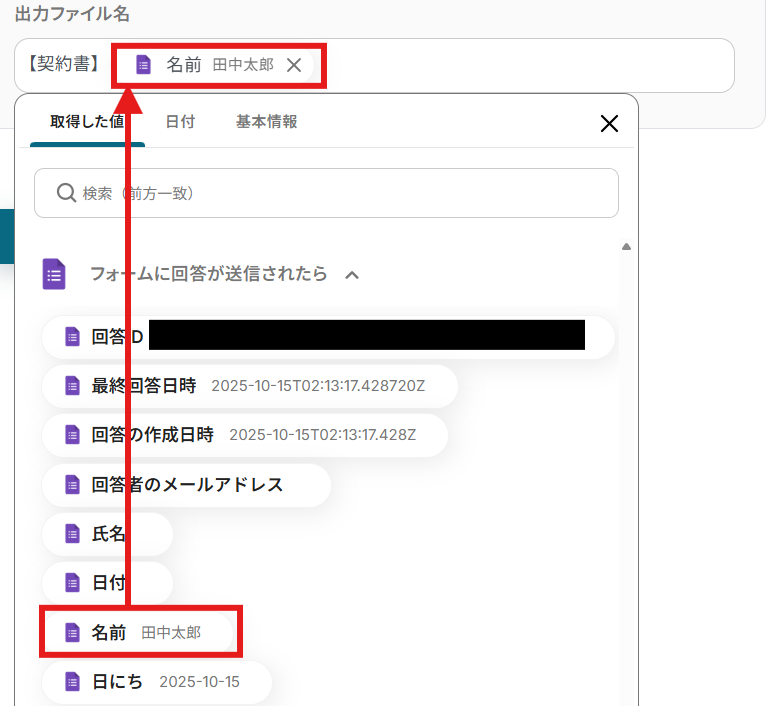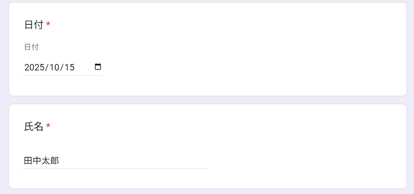 今回は例として、契約書に書類と日付を自動で反映できるように以下のフォームを作成しました!