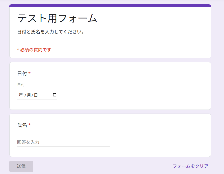 このフローで使用したいGoogleフォームの作成がまだの方はこのタイミングで作成しましょう。