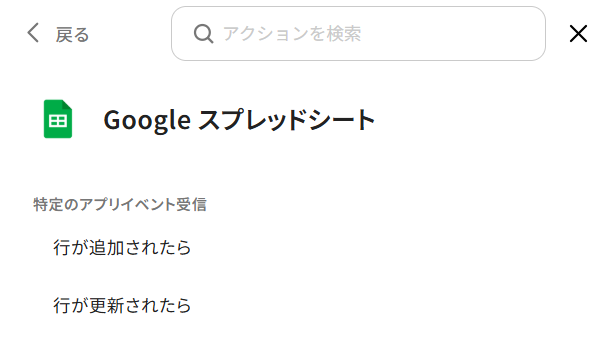 「変更」をクリックし「トリガータイプの選択」から「Google スプレッドシート」を検索。