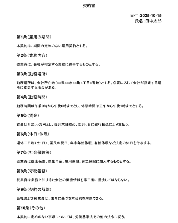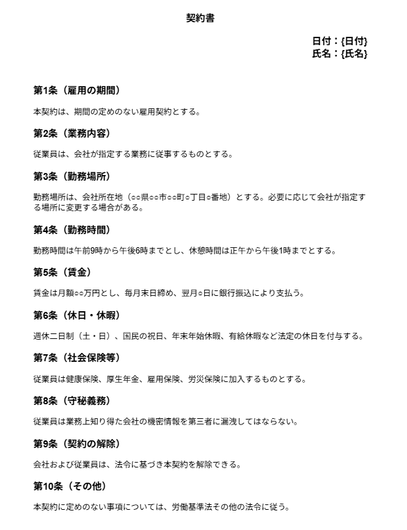 「新しい従業員が入社するたびに、雇用契約書をゼロから作成するのは時間がかかりすぎる…」