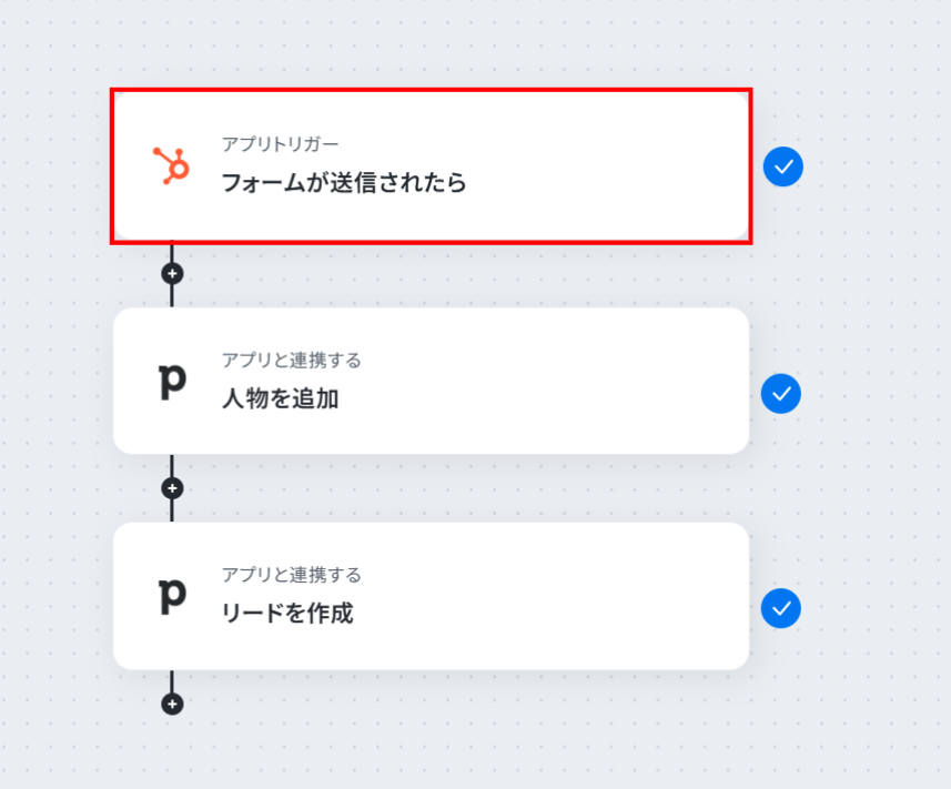 それではここから代表的な例として、HubSpotのフォームが送信された際に、その情報をPipedriveにリードとして自動で作成するフローを解説していきます!
