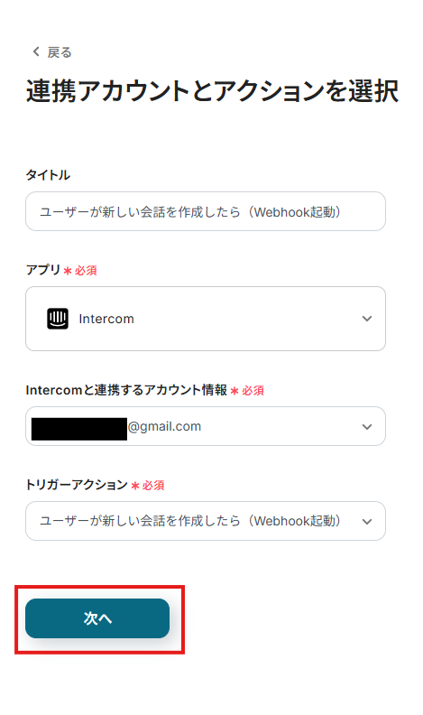 ステップ3:Intercomのトリガー設定