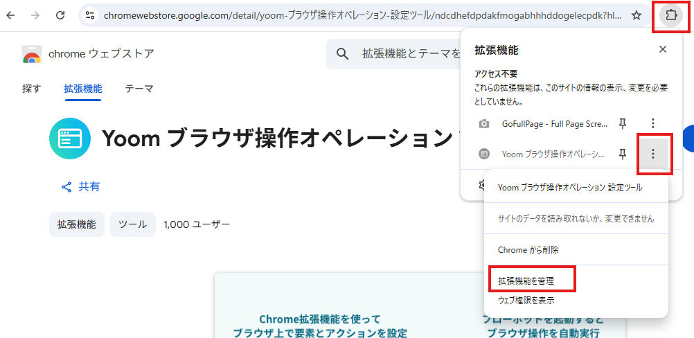 こちらからChrome拡張機能に「Yoom ブラウザ操作オペレーション設定ツール」を追加してください。