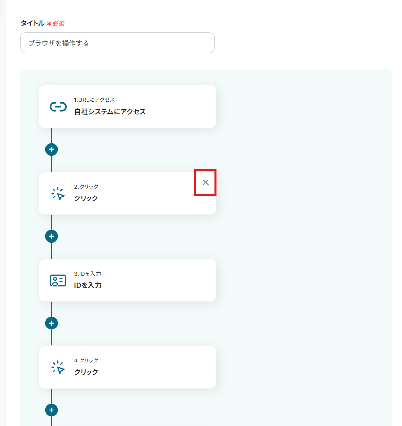 ※二つ目以降のアクションは不要なため、削除しておきましょう。ブロックの上にマウスを当てると「×」が表示されます。