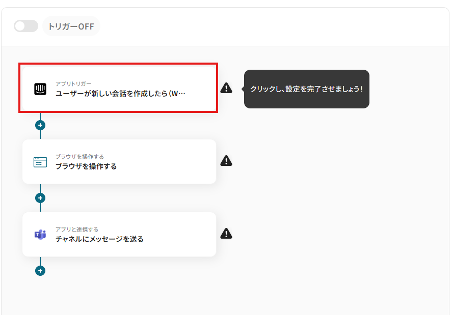 下記「ユーザーが新しい会話を作成したら(Webhook起動)」をクリックしてください。