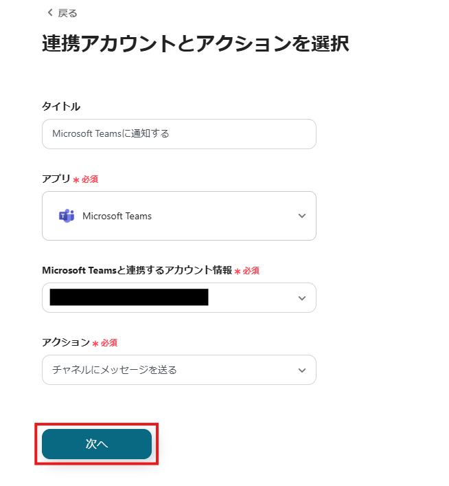 ステップ5:Microsoft Teamsのアクション設定