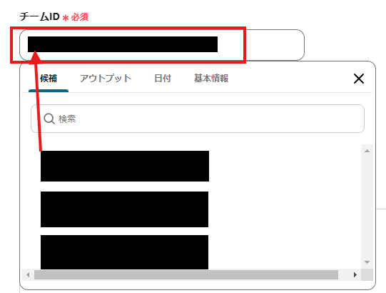 「チームID」「チャネルID」ともに、入力欄をクリックして表示される候補から選択してください。