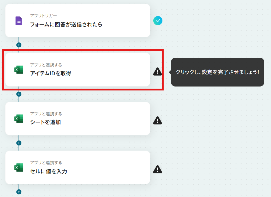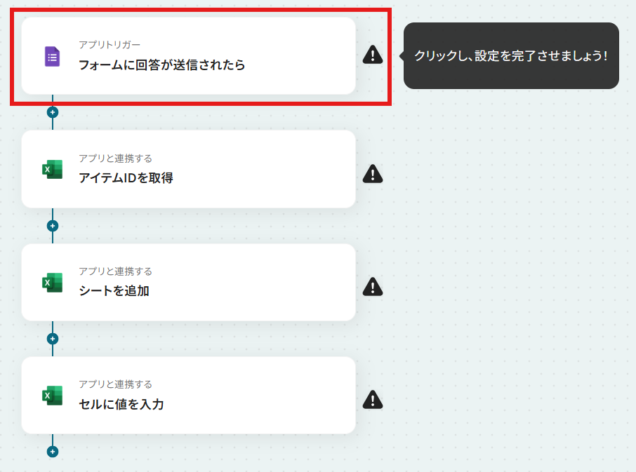 - Googleフォームのトリガー設定とMicrosoft Excelのアクション設定