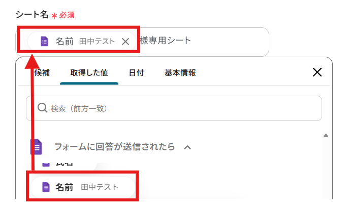 手動で「取得した値」を追加する方法について、詳しくは以下をご覧ください。