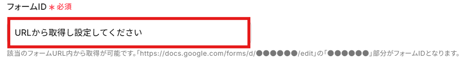 先ほど作成したGoogleフォームの「フォームID」を注釈に沿って手動で入力しましょう。